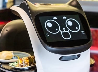 Conoce a nuestra gata camarera robótica, la atracción principal de nuestro restaurante, que te sorprenderá con su increíble carisma a la hora de entregar platos.